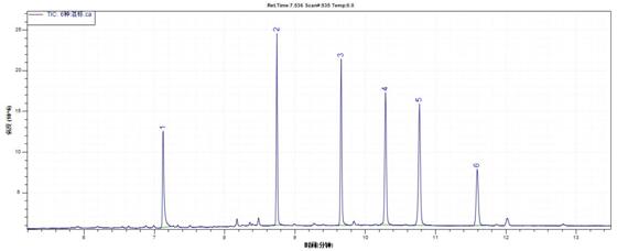 图2. 6种方针物总离子流色谱图