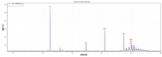 图14. 6种邻苯二甲酸酯规范物资总离子流色谱图